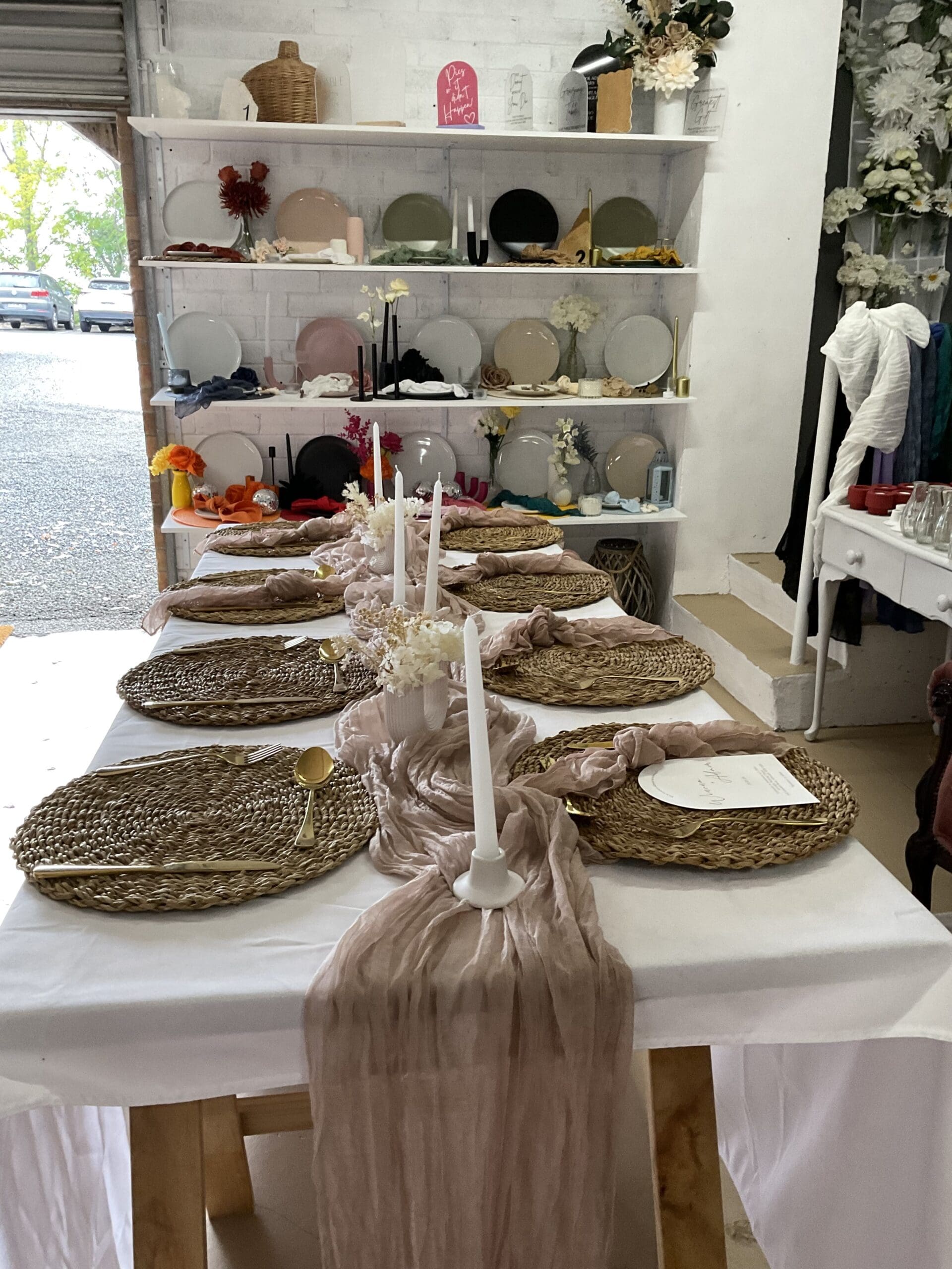 This is our storage space, workspace, sometimes family daycare and most importantly the place where you can come and sit down with us to brainstorm, set up a table and play around with different table settings, pick balloon colours or grab helium balloons and partyware from our range!